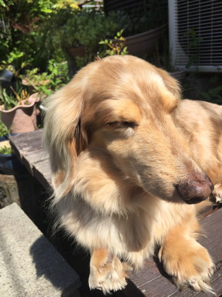 マロンはこの日もお外でポカポカ気持ち良さそうに日向ぼっこしていました。