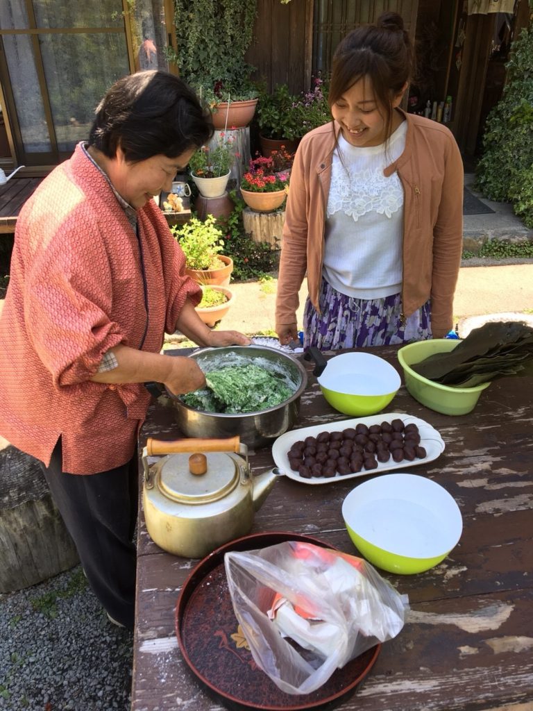 2日目はオプションで申し込みをしていた、朴の木だんごを作りました。