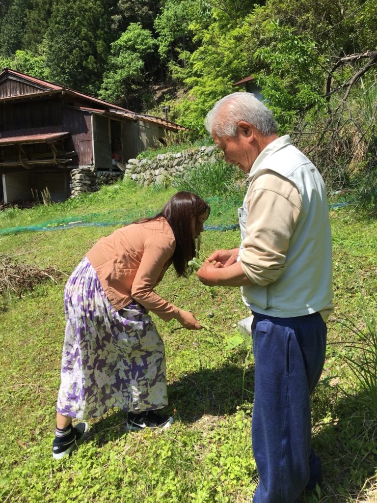 その後に、事前に山菜取りができると聞いていたので、お庭でお父さんと山菜取り。